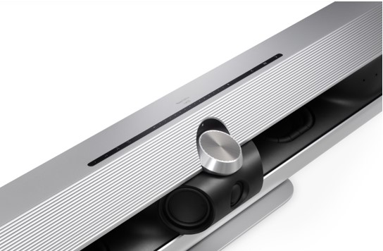 Безшовний корпус має перлово-матову поверхню. Щоб досягти такого компактного вигляду, інженери ювелірно поєднали екструдований алюміній із точними торцевими кришками, водночас розмістивши всередині десять потужних динаміків. Центральним елементом став твіттер, спрямований угору — мов коштовність у центрі саундбару. На його поверхні — 1 925 мікроперфорацій, що символічно відсилають до року заснування Bang & Olufsen та 100-річчя безкомпромісного ремесла.