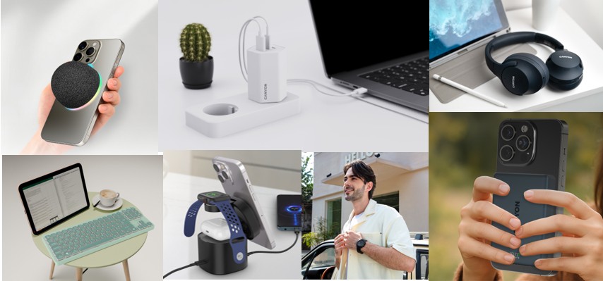 - Canyon OnCharge 405 – бездротова підставка для швидкої зарядки кількох гаджетів одночасно. Магнітна зарядка 15 Вт для iPhone, підтримка AirPods та Apple Watch, додатковий USB-C 30 Вт для інших пристроїв. Сильні магніти та системи захисту забезпечують стабільну і безпечну зарядку.
